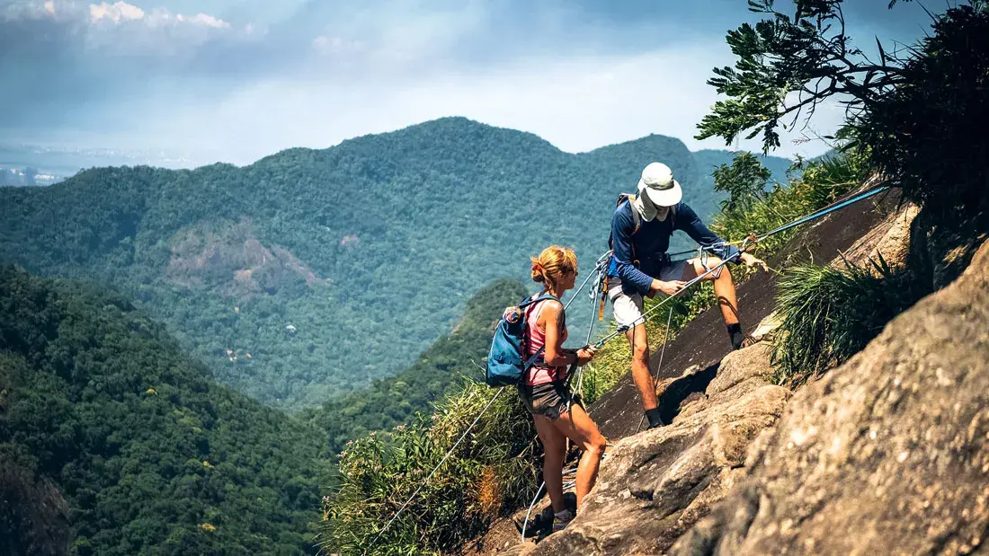 Start the challenging ascent to Pedra da Gavea, a 2–3 hour trek through the lush Atlantic Forest. Expect steep natural trails and rope-climbing sections near the summit. Spot native flora and fauna along the way.